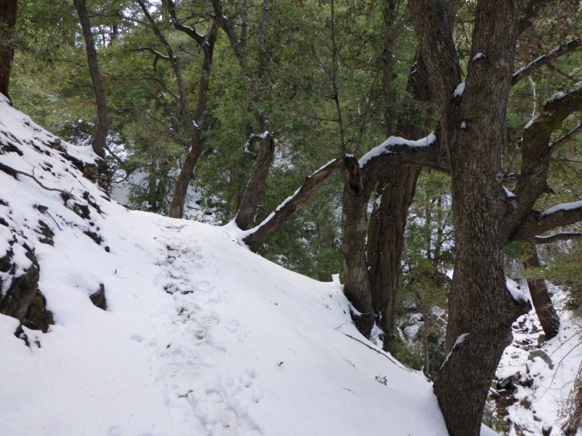 Gab1302-118 Published February 16, 2013 at 1024 × 768 in Snow Hiking In Los Angeles: Gabrieleno Trail Gabrieleno Trail from Red Box to Valley Forge in snow.