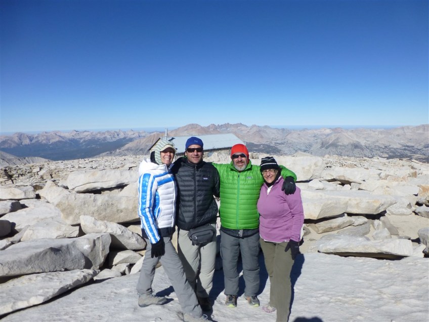 Camilla, Etienne, myself, and my wife Debbie on Mt. Whitney on August 1, 2013. Unfortunately, on the way down I injured myself and began on long period of dealing with injuries. 2013 was still a decent year with 77 hikes covering over 638 miles.