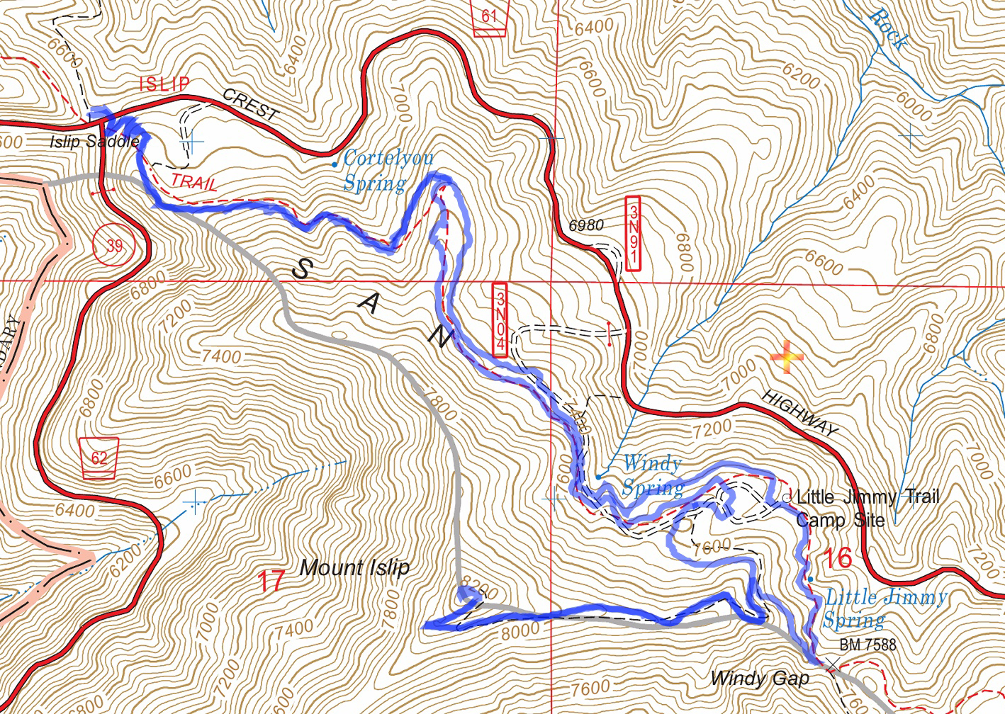 Islip-1901-t Published June 1, 2019 at 1418 × 1008 in Islip Saddle to Mt. Islip Loop Track Map for Islip Saddle to Mt. Islip Loop from May 2019 using Backcountry Navigator (US Forest Service-2013 map) from my phone.