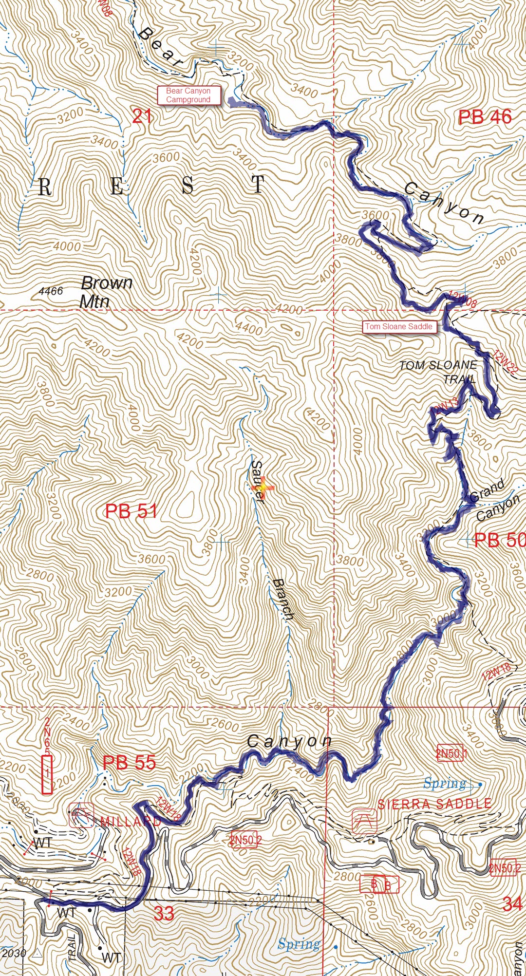 BearCynCG-1802-T Published February 22, 2018 at 1080 × 2004 in Millard Canyon to Bear Canyon Campground Track Map for Millard Canyon to Bear Canyon Campground from February 2018 using Backcountry Navigator (US Forest Service-2013 map) from my phone.
