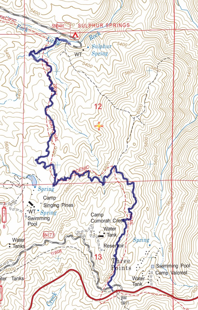 Sulphur-1801-T Published February 4, 2018 at 1080 × 1689 in Three Points to Sulphur Springs Campground Track Map Pacific Crest Trail from Three Points to Sulphur Springs Campground from February 2018 using Backcountry Navigator (US Forest Service-2013 map) from my phone.