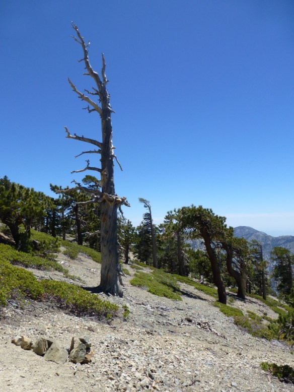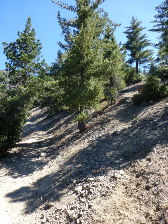 This steep ridge trail segment connects the Baldy Bowl Trail to the Devil’s Backbone Trail. It is an unmarked “use trail”, but is reasonably clear to follow when you know what to look for. So, first you need to get onto the Baldy Bowl Trail from road leading up to Baldy Notch.