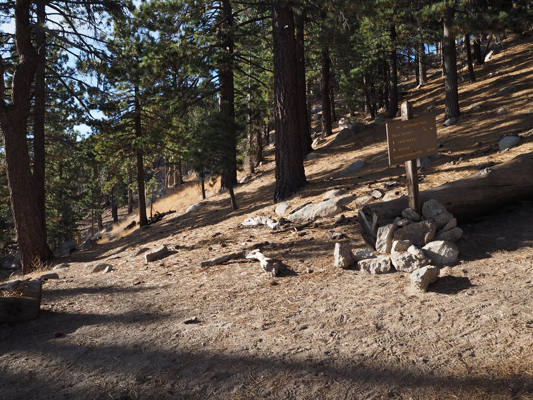 The junction with the Mt. Waterman Summit Trail. There is a nice rock formation to the south at the junction. It is a good place to stop and rest prior to going to the summit.
